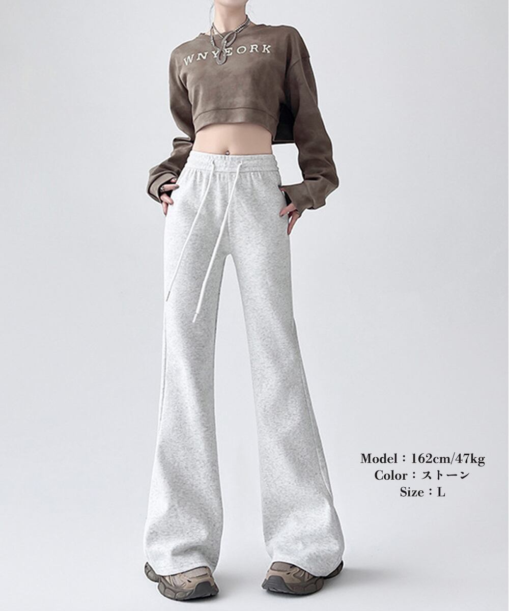 スウェットパンツ ハイウエスト ストレートパンツ 着やせ ウエストゴム オシャレ カジュアル お洒落