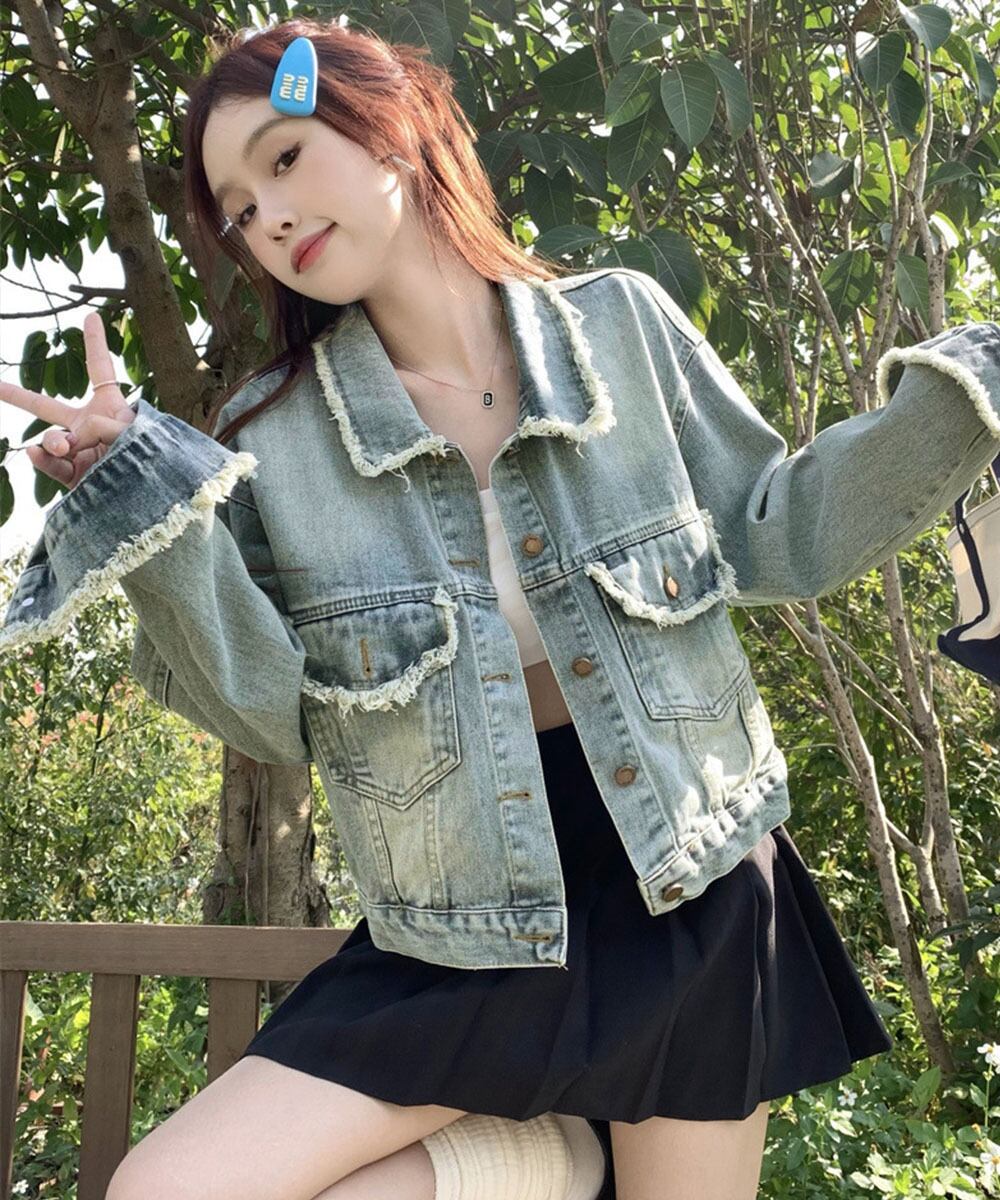 ジャケットゆったり ジージャン 韓国風 色落ち加工 デニム