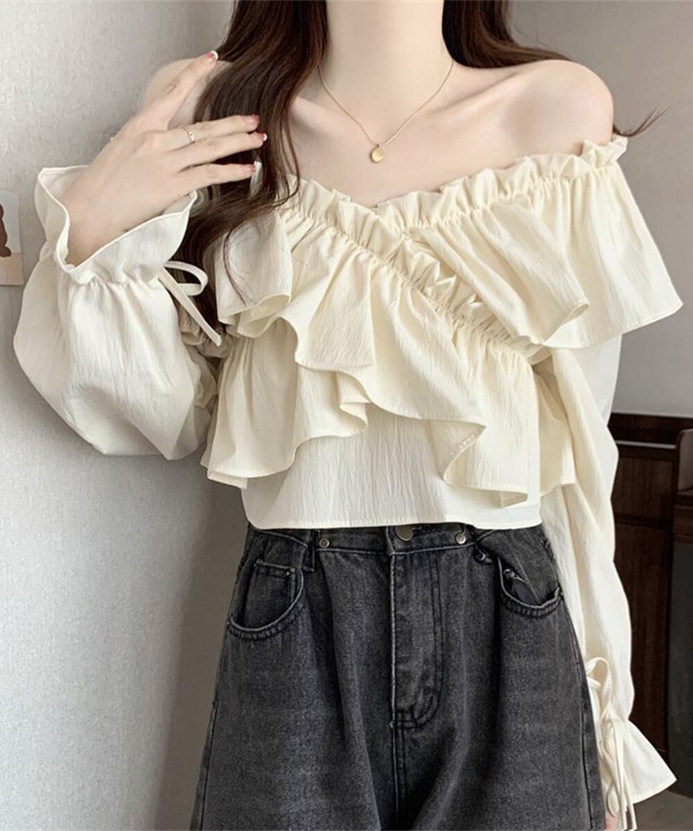 フリルブラウス オフショルブラウス 長袖