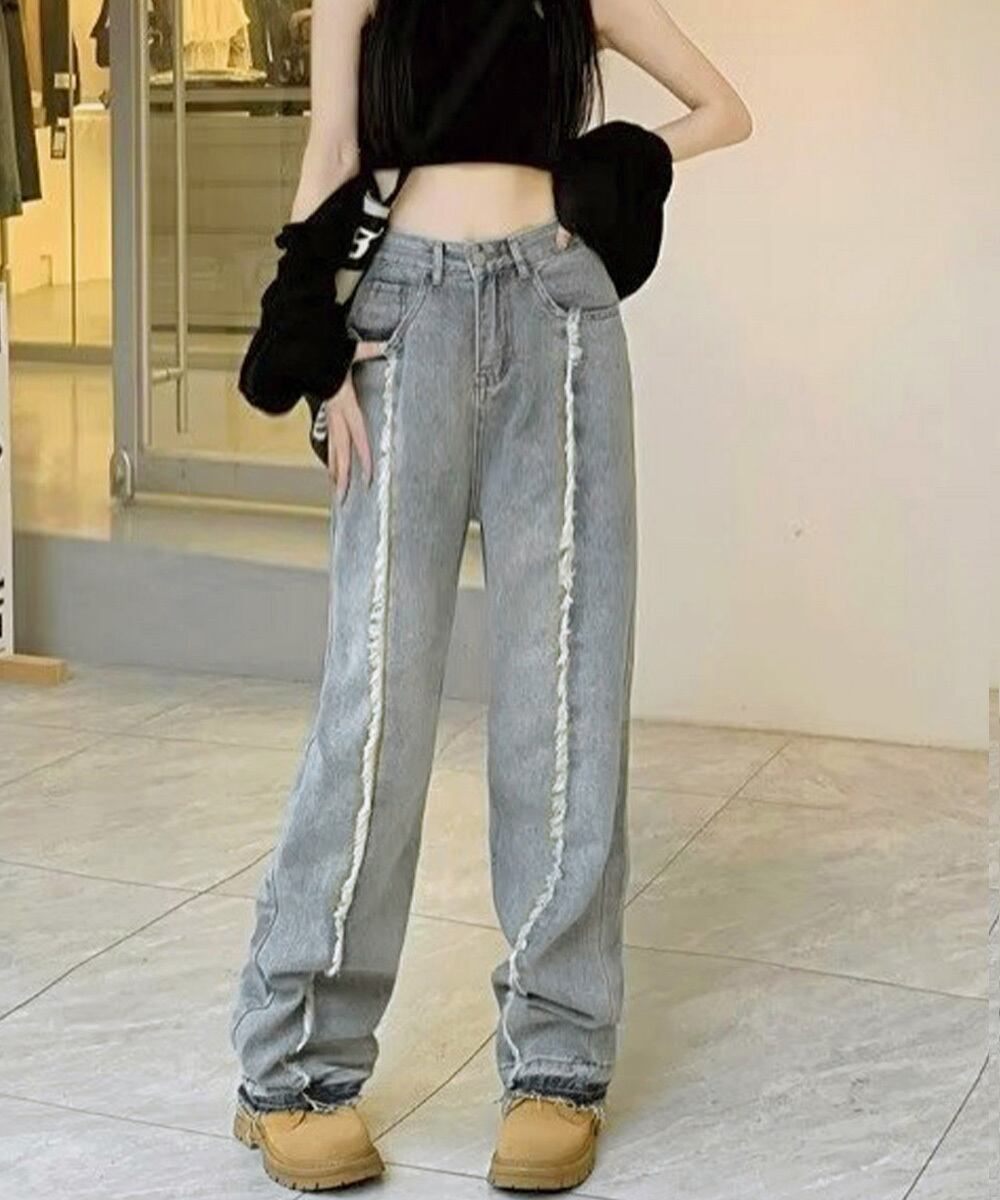 細見えデニムレトロ 切りっぱなしズボン カジュアルジーンズ