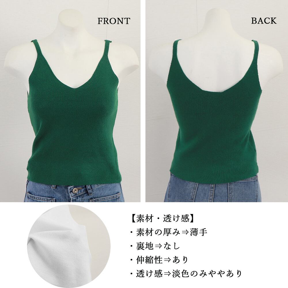 フロントのVカットデザインがポイントの細ストラップニットキャミソール