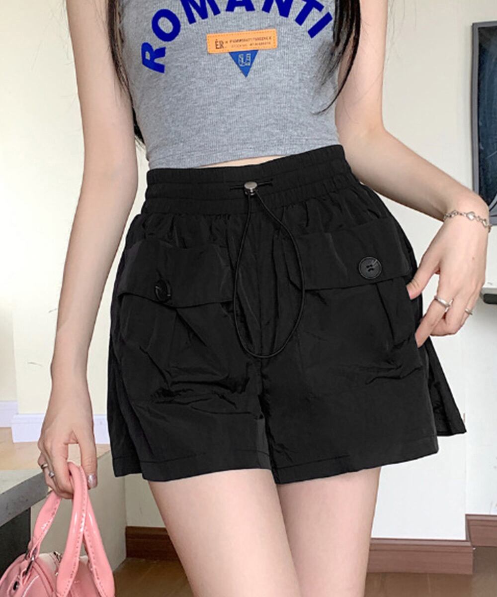 シンプルでスタイリッシュなカーゴポケットショートパンツ。
