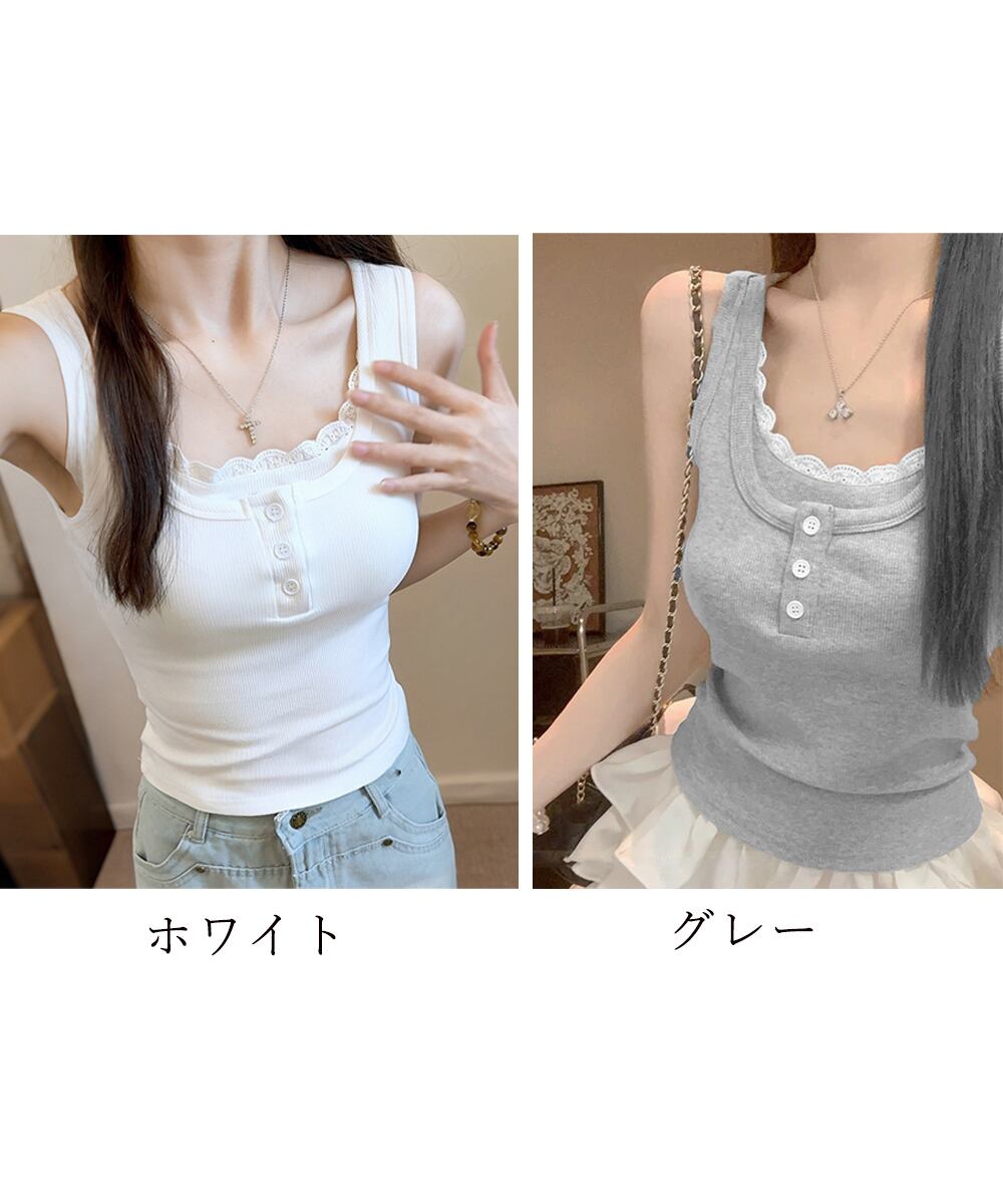 ネックレースタンク 無地サマートップス お洒落見せインナー