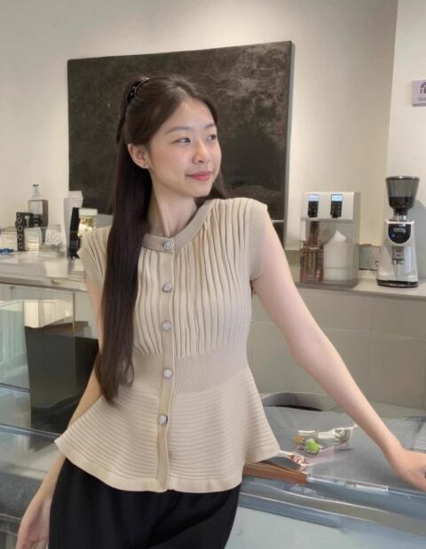華やかなフリル裾デザインのノースリーブニットトップスは、女性らしさを引き立てるおしゃれな一枚です!