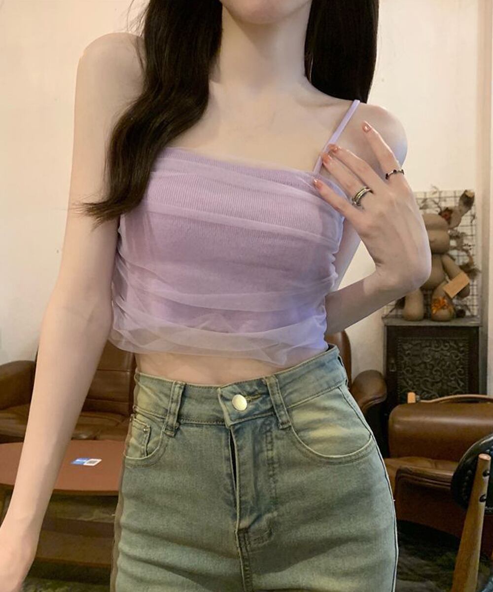透け感のあるチュールを重ねた、フェミニンなキャミソールトップス。