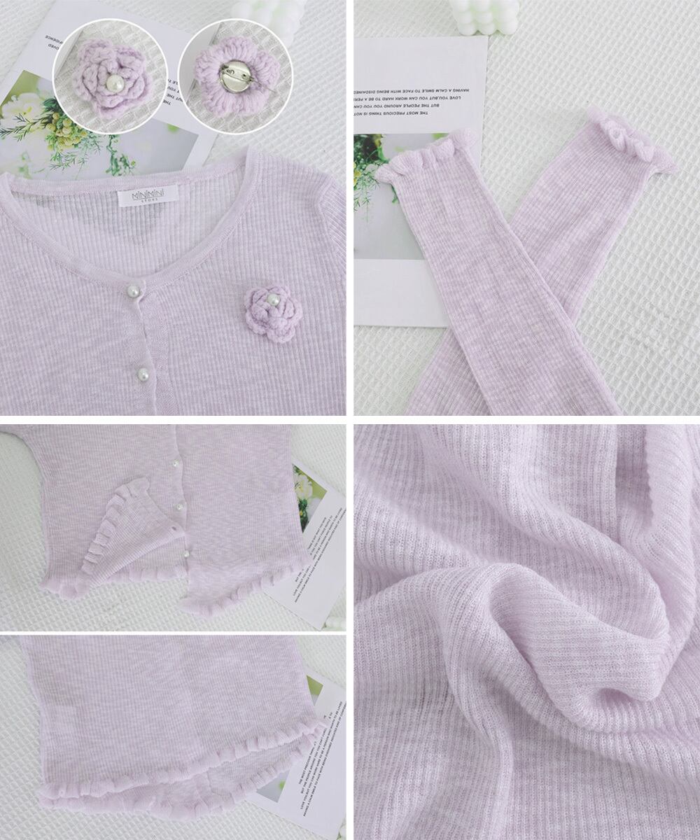 立体的なフラワーチャームが印象的なニットカーディガン。