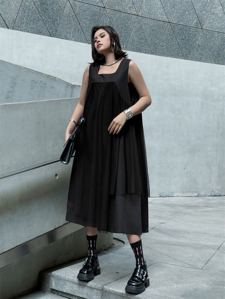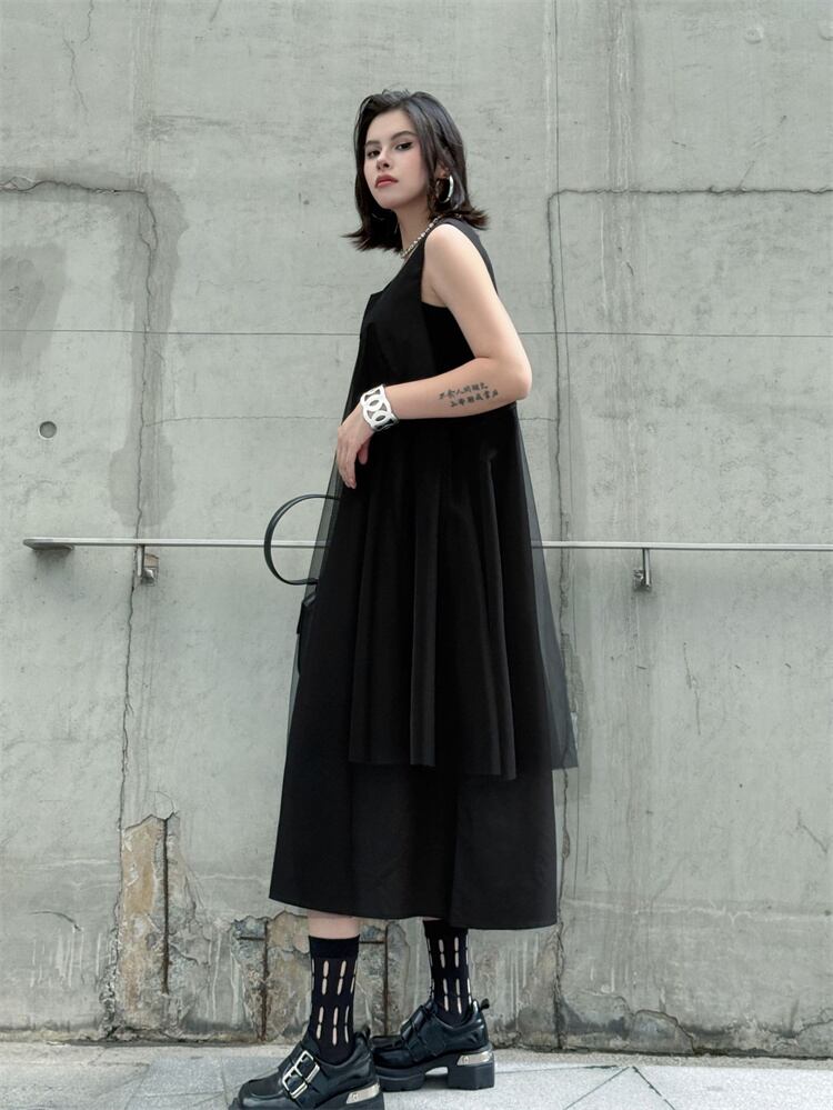 春夏新作 トレンドAラインノースリーブ レトロモダンデザイン 夏用リラックスフィットワンピース