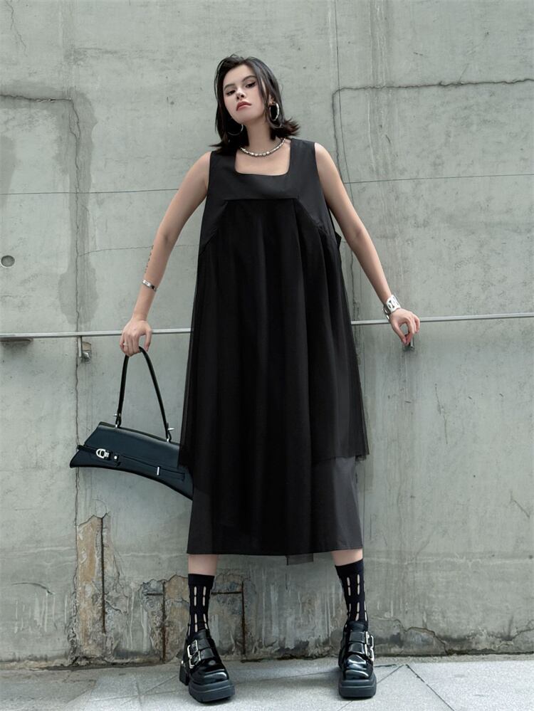 トレンドAラインノースリーブ レトロモダンデザイン 夏用リラックスフィットワンピース