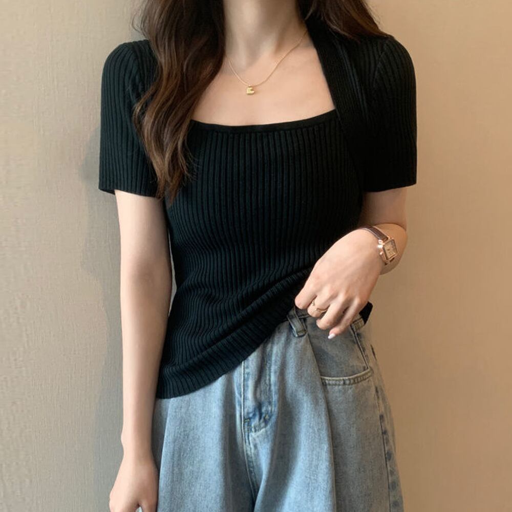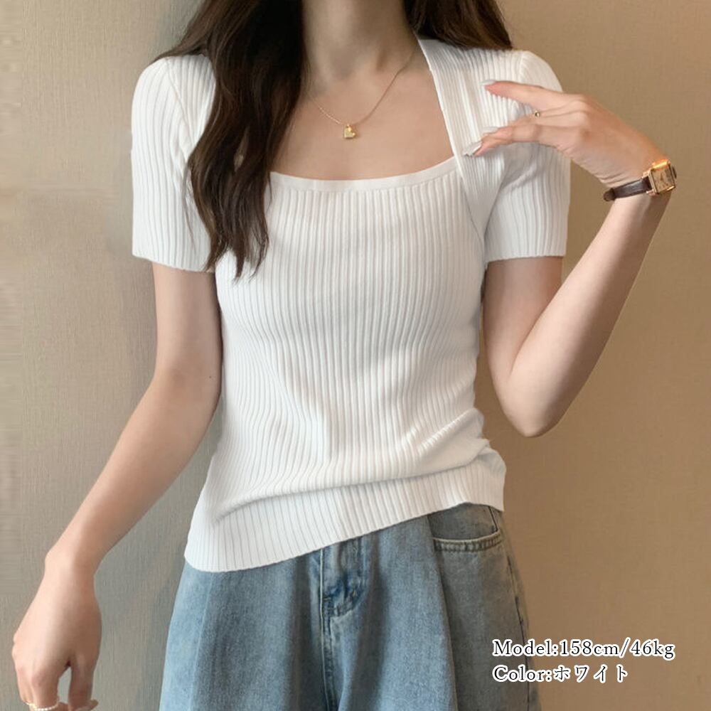 リブサマーニット スクエアネック 韓国風
