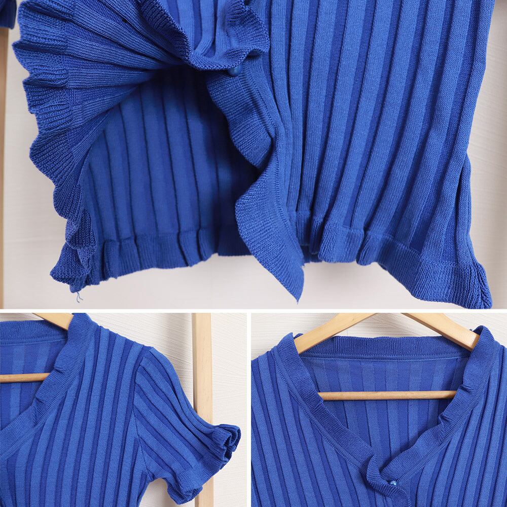サマーニット セクシー クロップド丈 半袖ニット 大人可愛い 太めリブ ニットトップスお洒落 セクシー 韓国ファッション