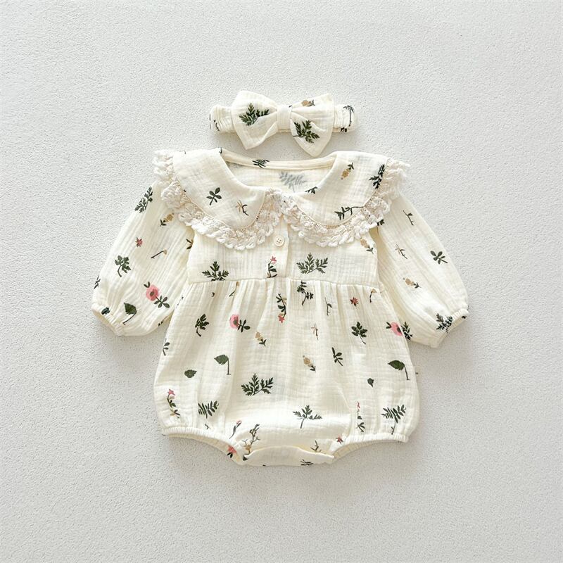 可愛らしさ満点の秋の新作ベビー服、ヘアバンド付きの長袖ロンパースが登場しました!おしゃれな花柄デザインが特徴で、女の子をより一層引き立てます。お子様の成長に合わせたサイズ展開で、長くご愛用いただけるアイテムです。