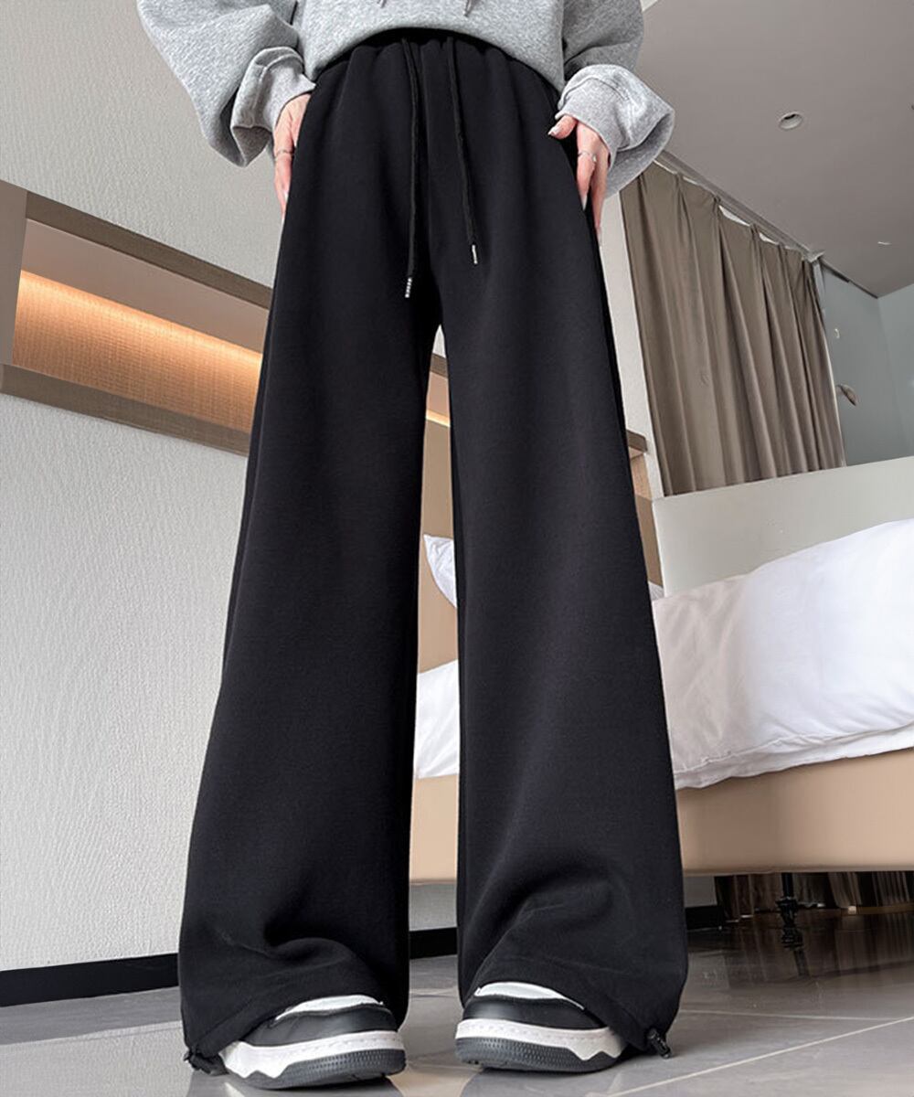 ウエストゴム ワイドパンツ 低身長 カジュアル 韓国 イージーパンツ 体型カバーボトムス ゆったり ランニングパンツ脚長