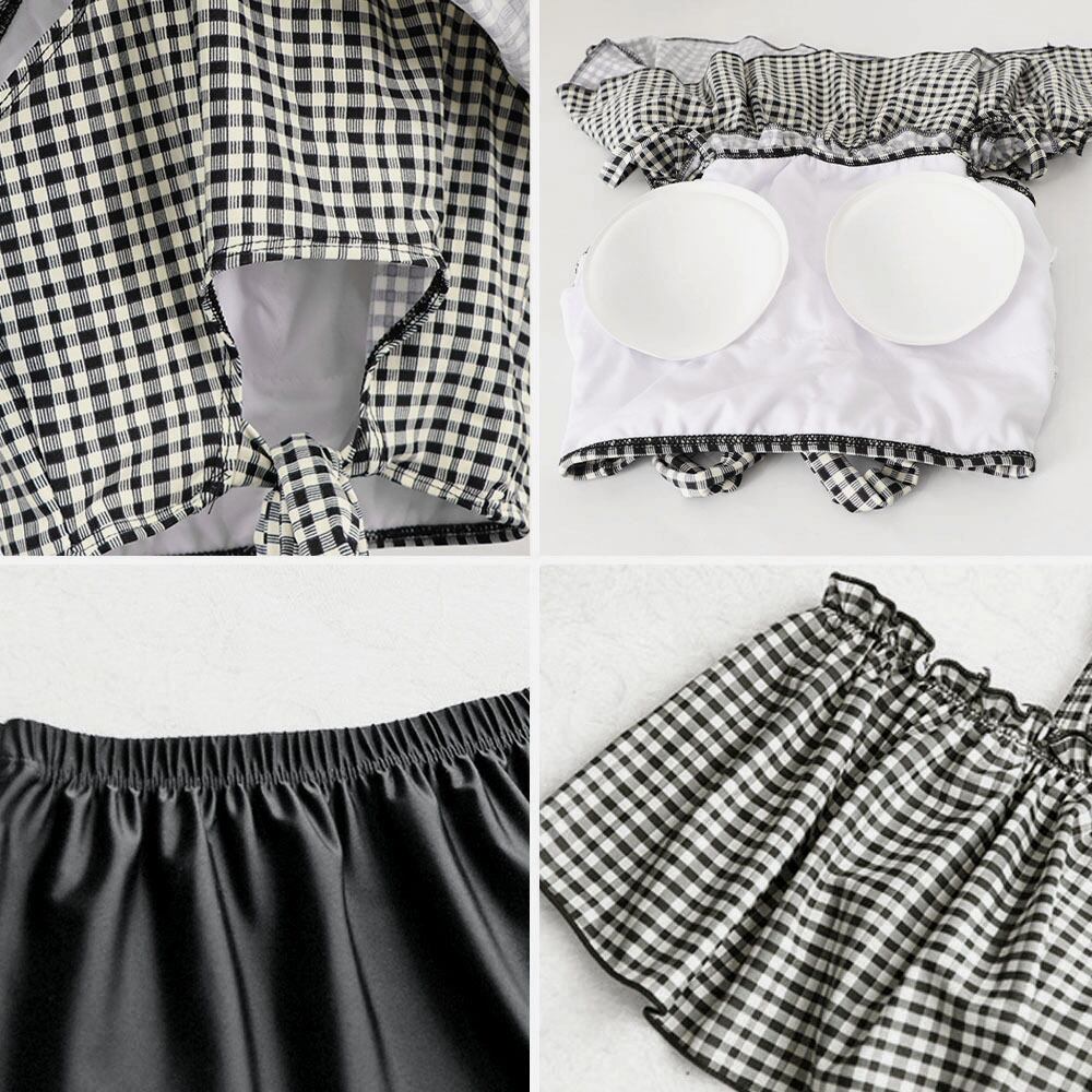 ショートパンツ ギンガムチェックトップス ハイウエストスカート 水着セット 露出控えめ スイムウェア体型カバー おしゃれ