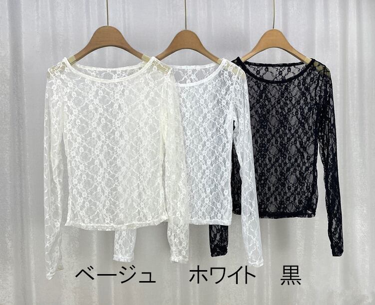 **商品名:トップス シアー シースルー 花柄 透け感 重ね着 レース レイヤード 長袖 レースインナー**