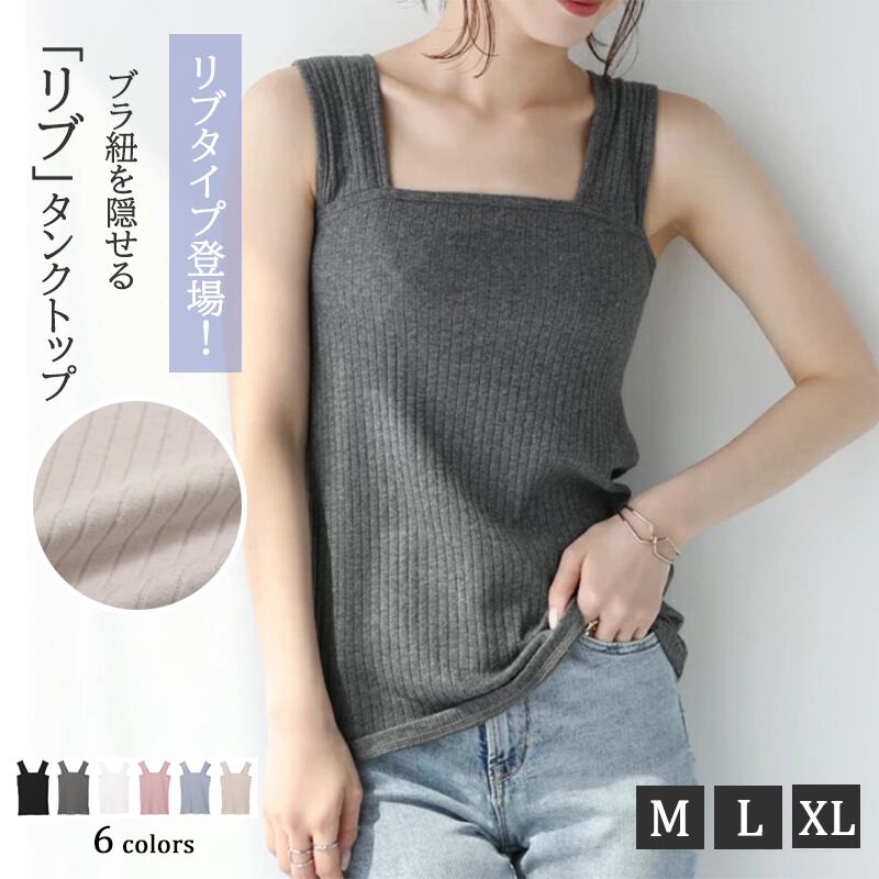**商品名:レディース タンクトップ リブ スクエアネック キャミブラ紐隠し シンプル ノースリーブ**