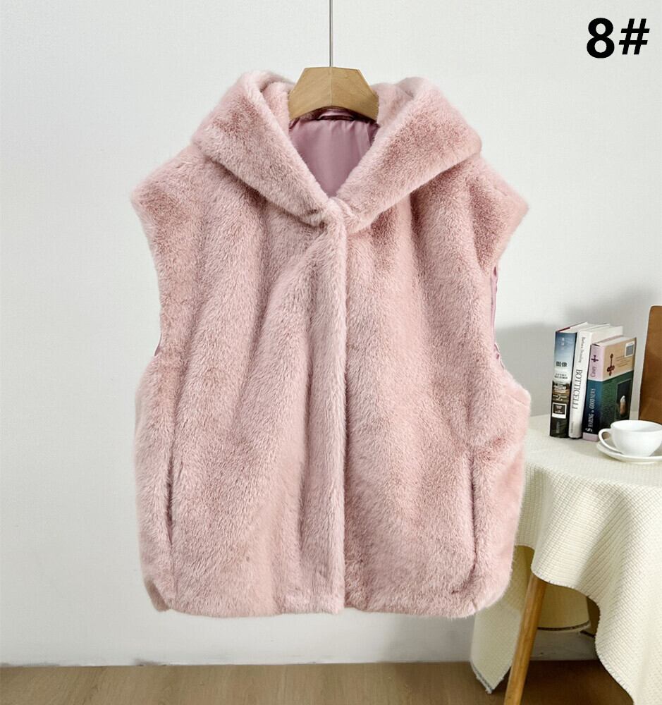 **商品名:秋冬新作 ファーベスト ベスト レディース服 フード付き トップス 防寒 ふわふわ 全8色**