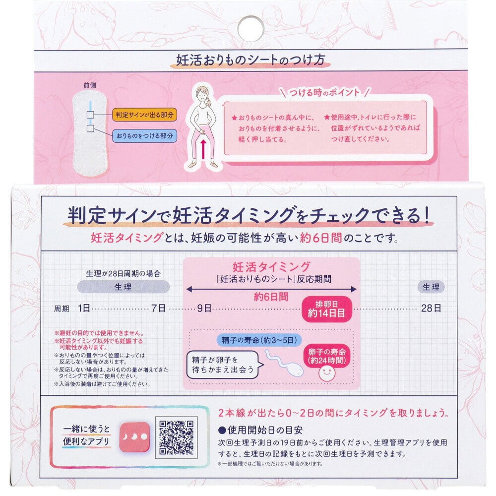 次回生理予測日の19日前からご使用ください。生理管理アプリを使用すると、生理日の記録をもとに次回生理日を予測できます。