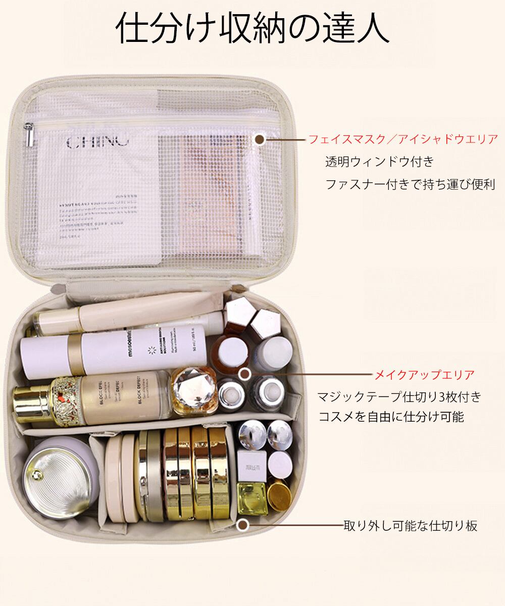 大容量で化粧品やスキンケアアイテムをスッキリ収納できる。