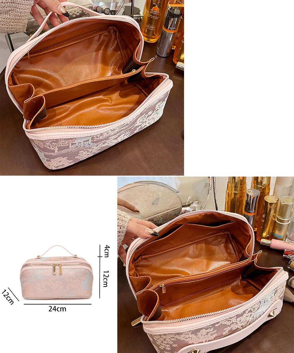 古風化粧ポーチ きれいめ大人可愛いバニティポーチ おしゃれ旅行コスメポーチ 持ち運び化粧品収納 大容量トラベルポーチ自立