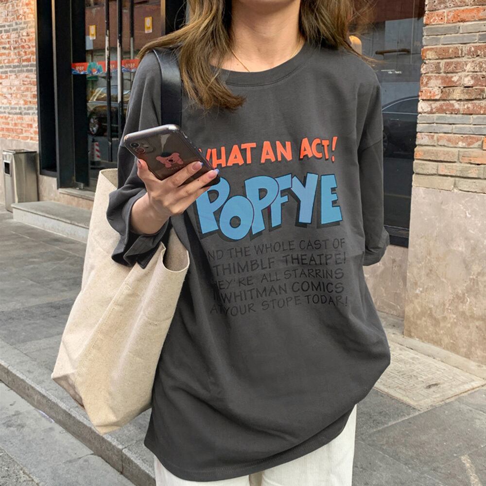 トップス ルーズ 英字ロゴ ロングTシャツ 着やせ 体型カバー プリントTシャツ 半袖 オルチャン 韓国ファッション夏服