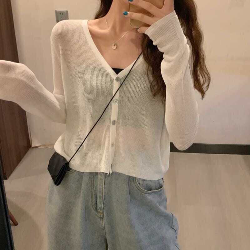 ディース Vネックカーディガン 長袖 日焼け防止 寒さ対策 透け感
